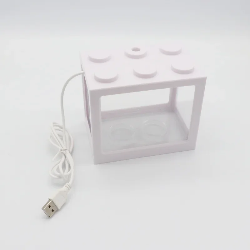 Mini tanque de peces de bloques de construcción con luz USB, para peces pequeños.